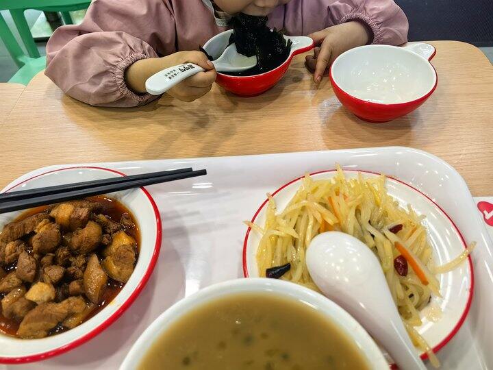 我赶紧穿上衣服,出来把孩子抱走了,等她哭的平静了,我才慢慢的问她为什么要闹着出去吃,她抽噎着说,妈妈,昨天中午你没吃到,那个蒋勺勺的海带汤,还有小猪肉,都可好吃了。