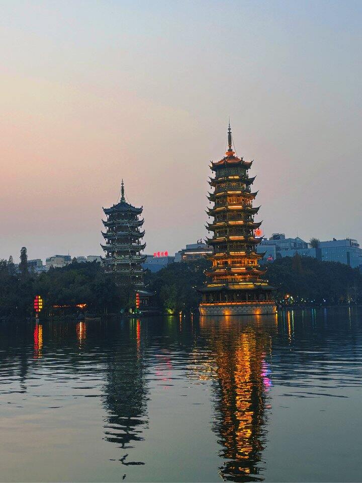 去了象鼻山,日月双塔,正阳街。