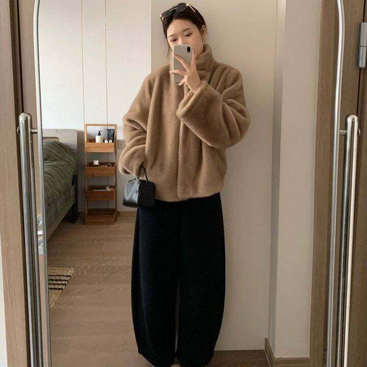 仿水貂立领环保皮草毛毛外套