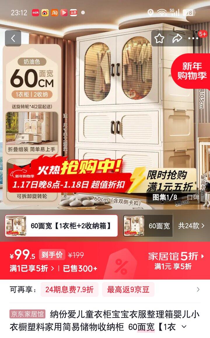 衣服收纳柜1衣柜+2收纳【99.5】