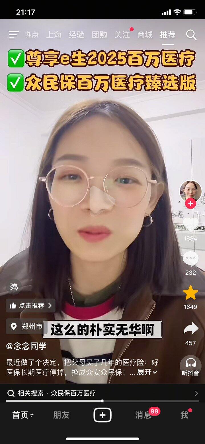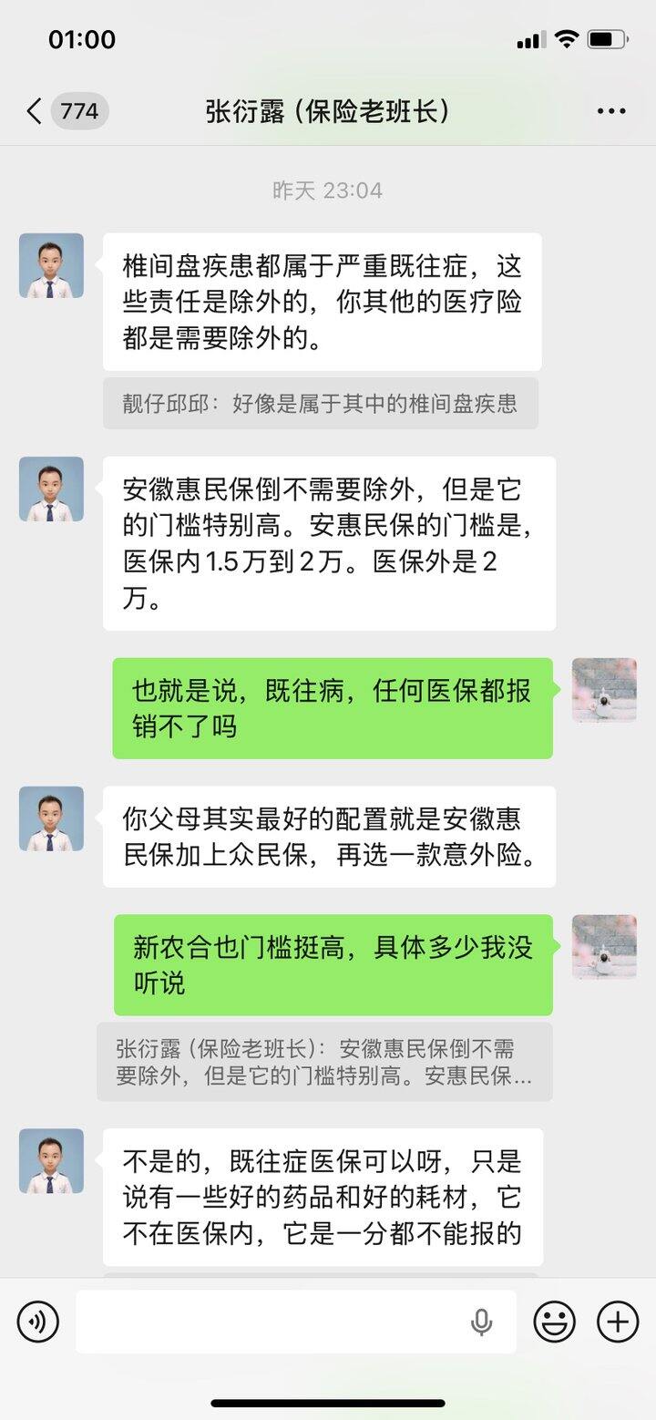 我看了一个微信视频号,叫保险老班长,他做的安徽养老保险医保视频看起来通俗易懂。这个人是保险经理人,和保险公司合作的。加了他问了一下,他建议我给我爸妈新农合必须买,再买安徽惠民保+众民保+意外险。