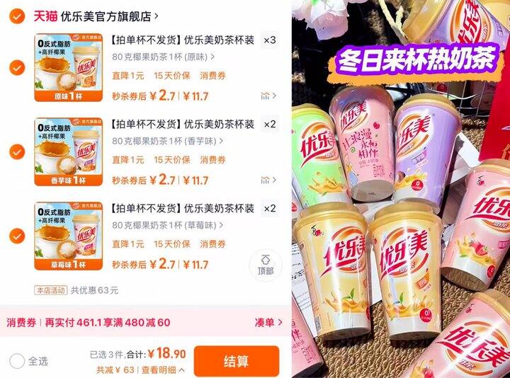 优乐美•经典椰果奶茶杯装,2.7