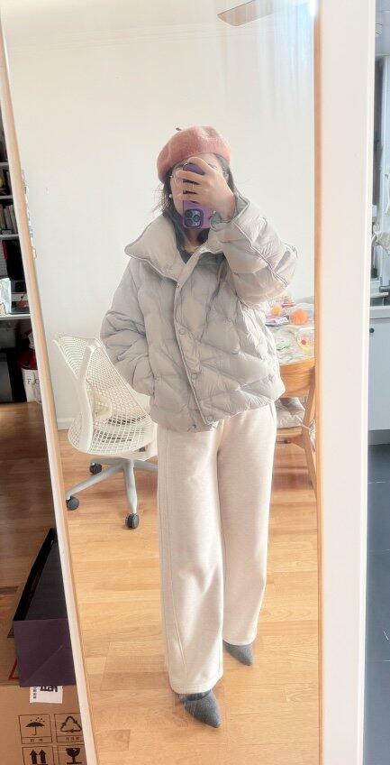 搭配线下店买的丝绒衬衫,穿一条米色长裤,搭配加绒尖头鞋,加一顶贝雷帽,陪孩子去看蝴蝶展。
