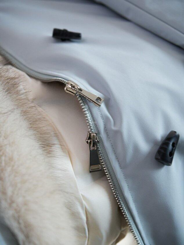 领口与门襟拼接环保皮草,保暖又高级~