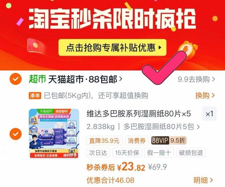 速‼️维达多巴胺湿厕纸80片