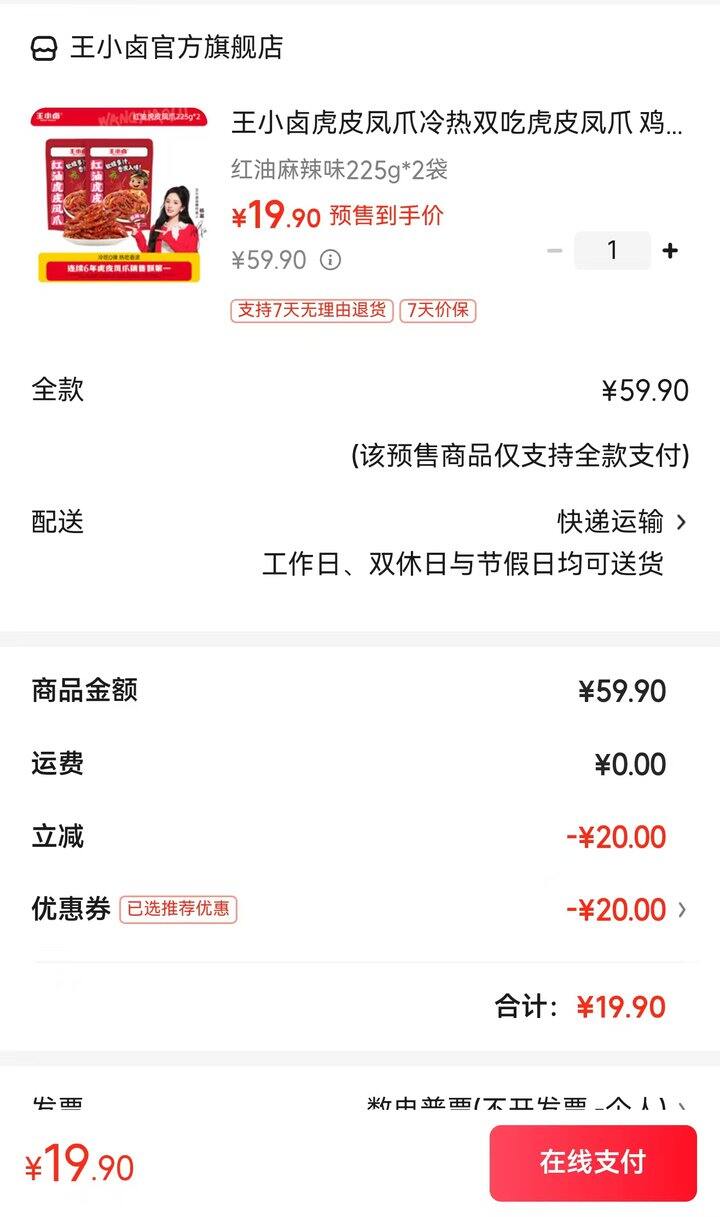 王小卤红油虎皮凤爪红油麻辣味225g*2袋