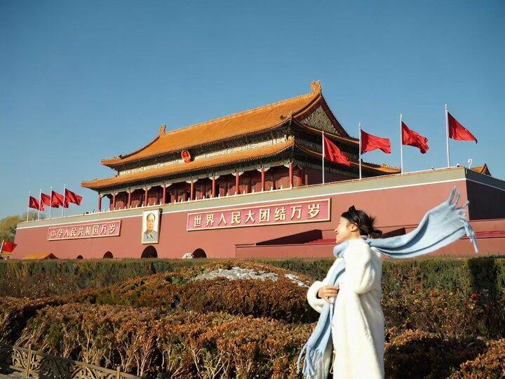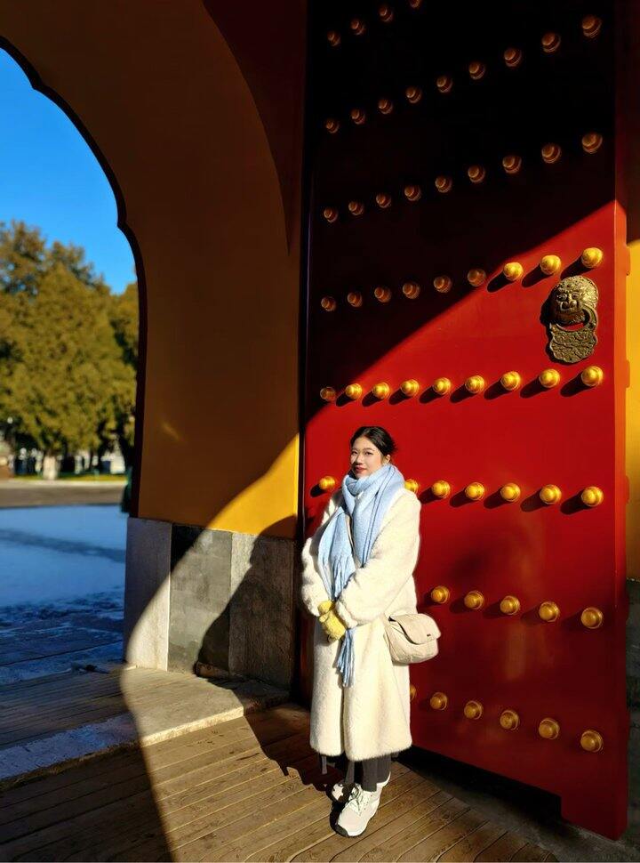 白色加皮草显胖但出片,只要一百多,发到朋友圈里姐妹夸说富贵,保暖性也不错,刚好碰上北京下雪后,里面穿了德绒加羊毛毛衣也不冷。这个是在城楼旁边的中山公园拍的,里面拍照很好看,进去只要3块钱!!!外面也有格格衣服写真的