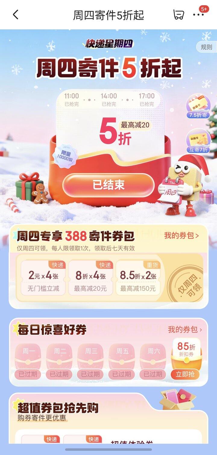 刚发现周四可以抢5折券,还有0.11买7.5折,好久没有0.1入5折了,plus会员积分兑换🐶东快递一年只有4次,一次1积分。
