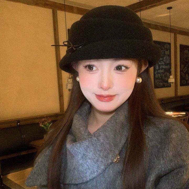 今年好流行这种千金帽,这个帽子适合大头,也不显的太浮夸,配上大衣穿,涂个红唇,就是民国大小姐哈哈哈哈