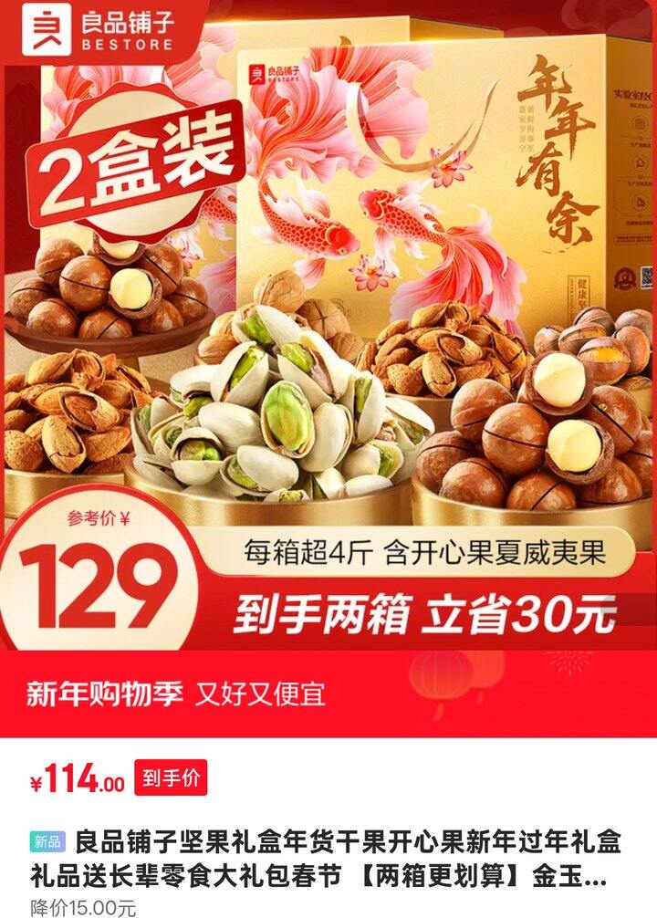良品铺子金玉缤纷坚果礼盒2045g*2箱