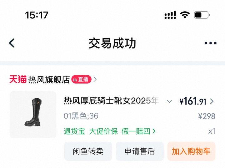 想买长靴很久了,之前双十二热风直播间第二件半件,果断拿下
