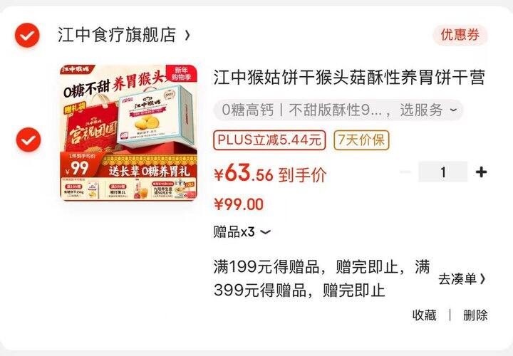 Plus到手63.56💰 赠饼干48g*2+礼袋