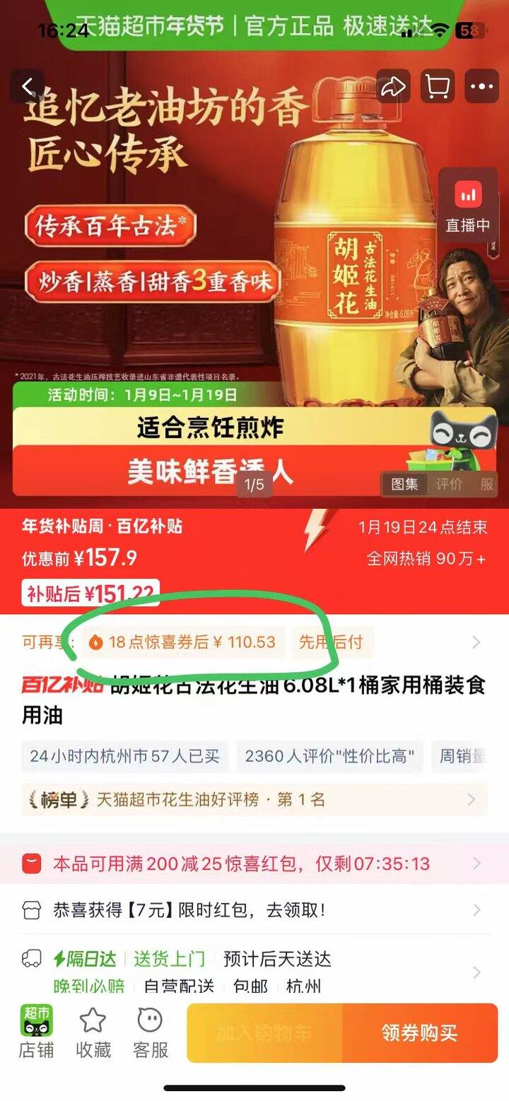 胡姬花古法花生油6.08L*1桶:https://s.click.taobao.com/Muz218o,领4.68淘礼金;