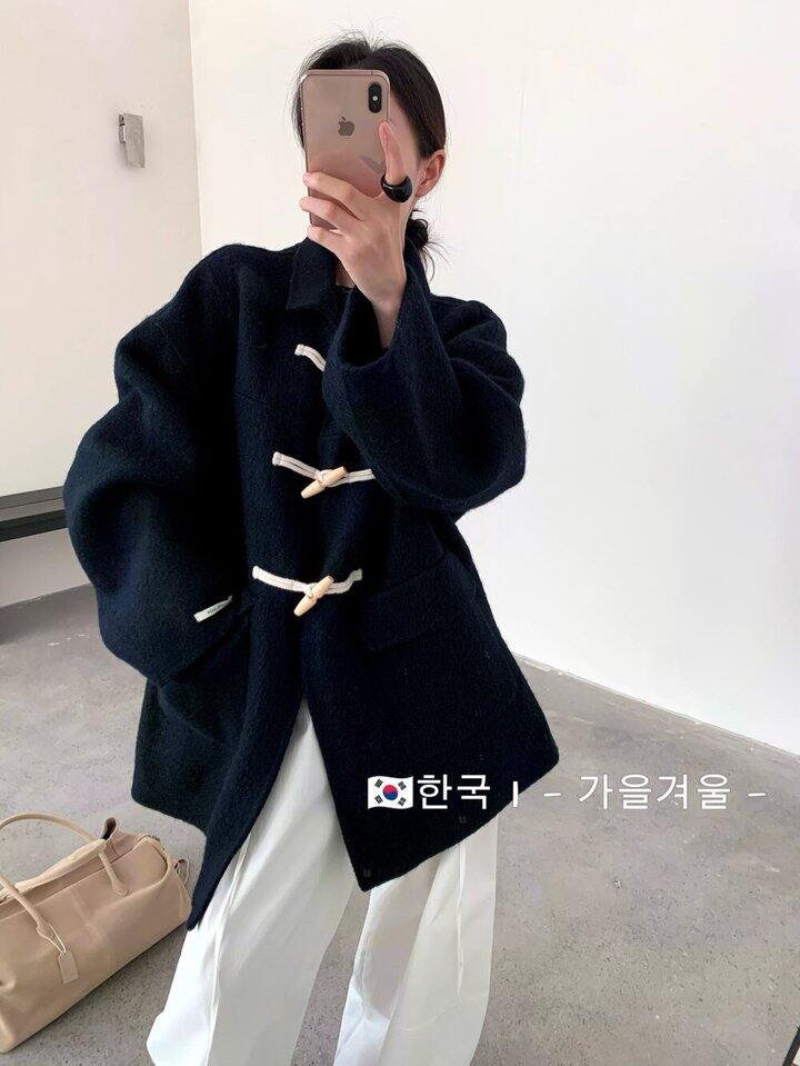 HU287 「我在闲鱼发布了【现~韩国东大门代购lmportant女25秋冬韩系复古牛角扣】」