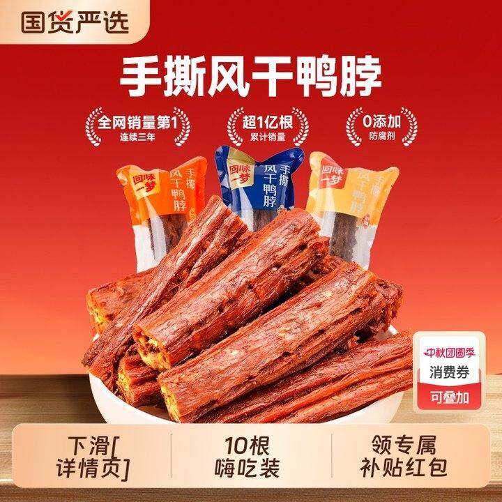 回味一梦手撕风干鸭脖子10根卤味鸭货氮气锁鲜小包装夜宵小吃零食