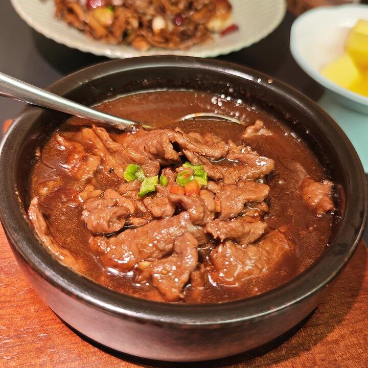 晚上继续吃饭,餐厅名“四道菜”,她去了6次,今天带我去吃,3个人6个菜全清空!