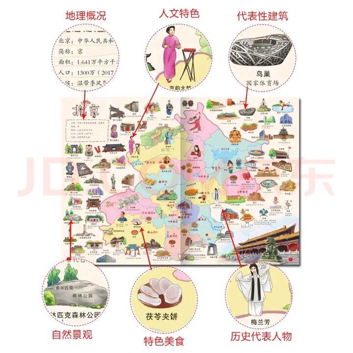 📚《手绘中国地理地图》精装全彩人文版 大开本