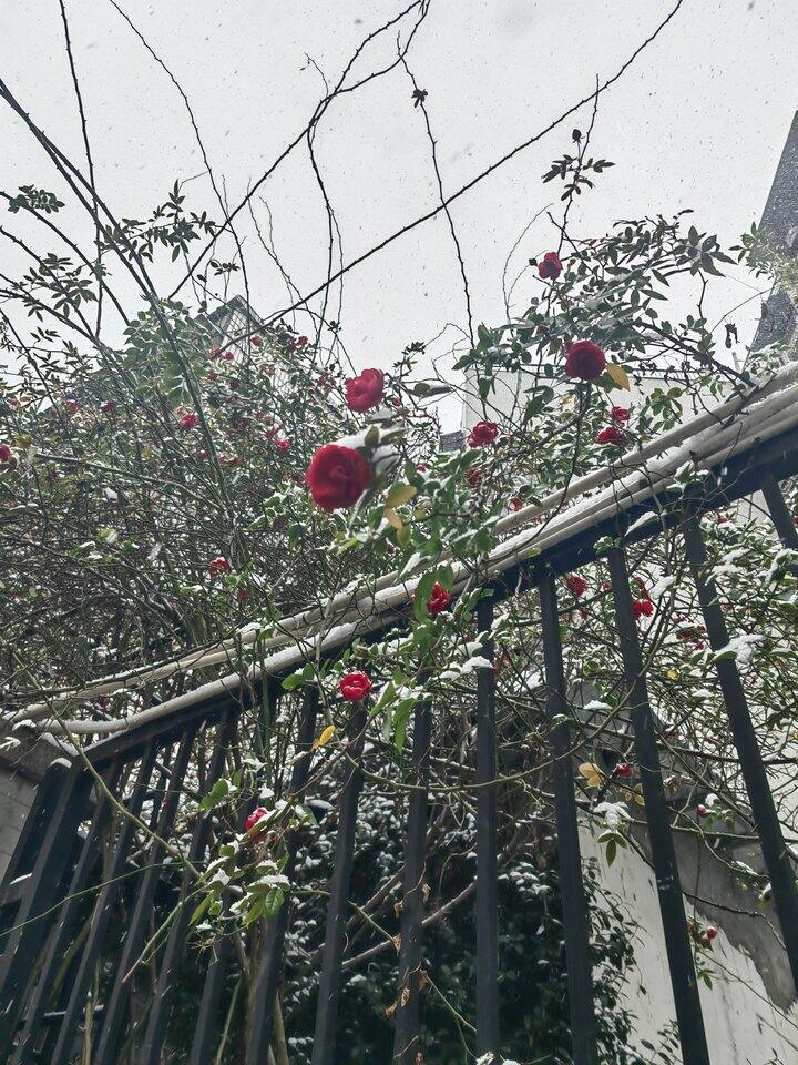 上个星期天气很暖和,被骗出来的蔷薇,傻乎乎的开花