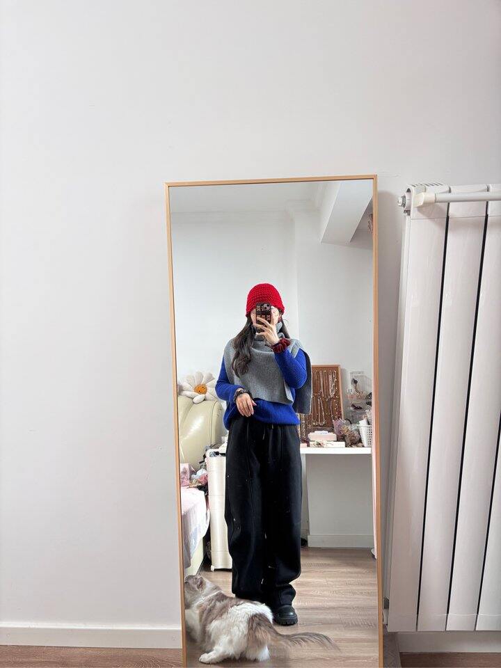 特意穿上比较防滑的羊毛靴,曾经觉得这双鞋很笨重,这两年穿多了厚底鞋,才发现这双鞋不仅不重跟还不高,习惯了增高五零,三厘米已经看不上了。今天秋衣、羊绒背心、羊绒衫、羊毛坎肩、羽绒服,秋裤、羊毛过膝袜、厚卫裤,妈妈牌小红帽,正好。