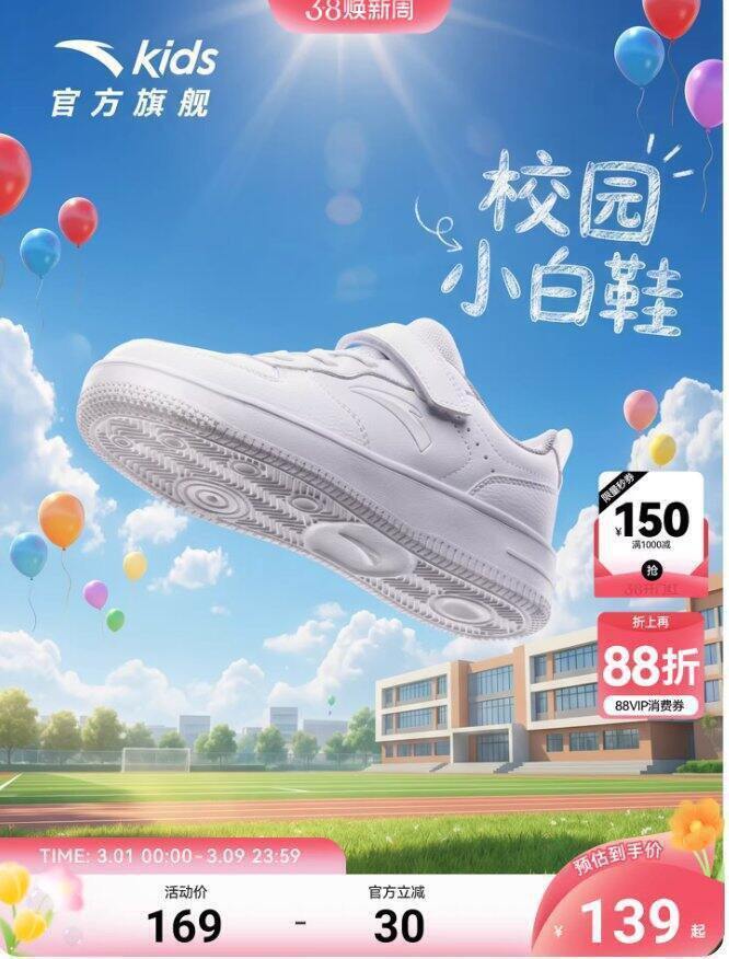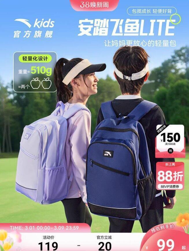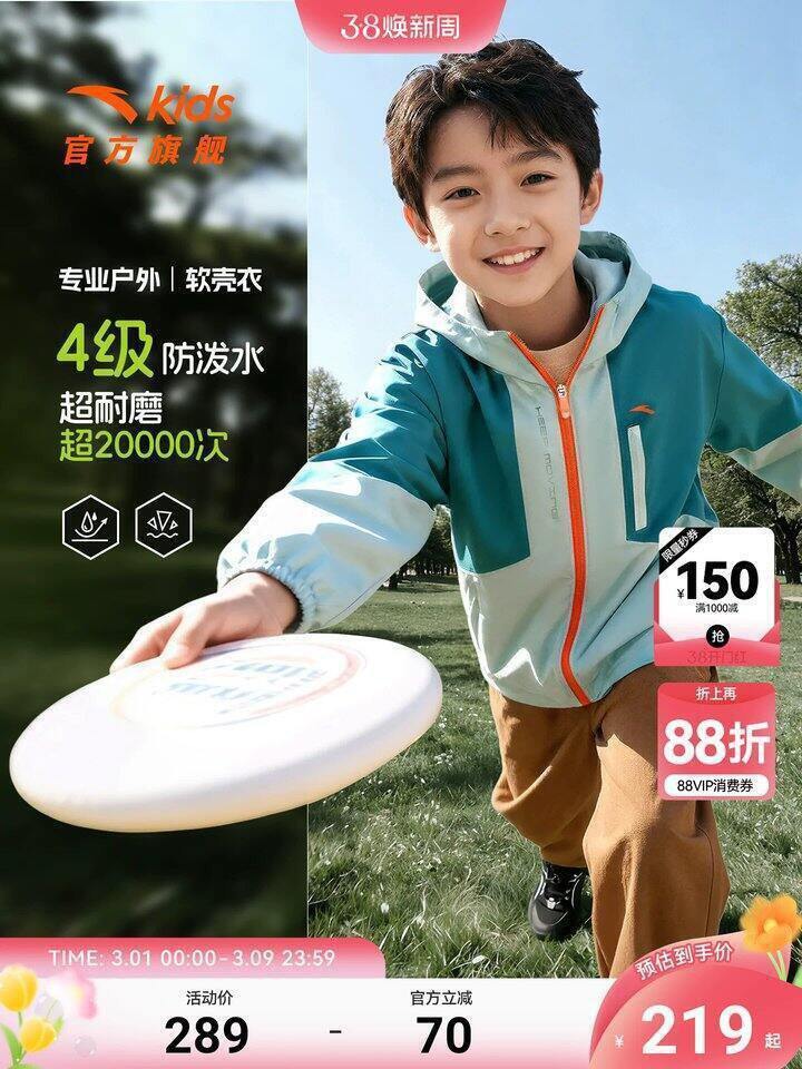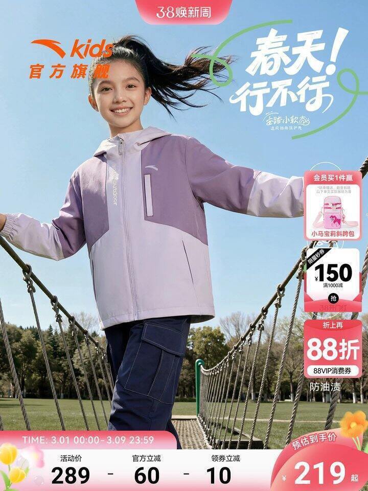 https://s.click.taobao.com/BVyGsln安踏童装500+买1000,羽绒服100+(最大尺码170);价格蛮实惠的了,品种特别齐全,大童小童男女款服饰鞋帽一应俱全,而且羽绒服最大尺码170、鞋子最大40,大人可以穿还可以凑亲子款;