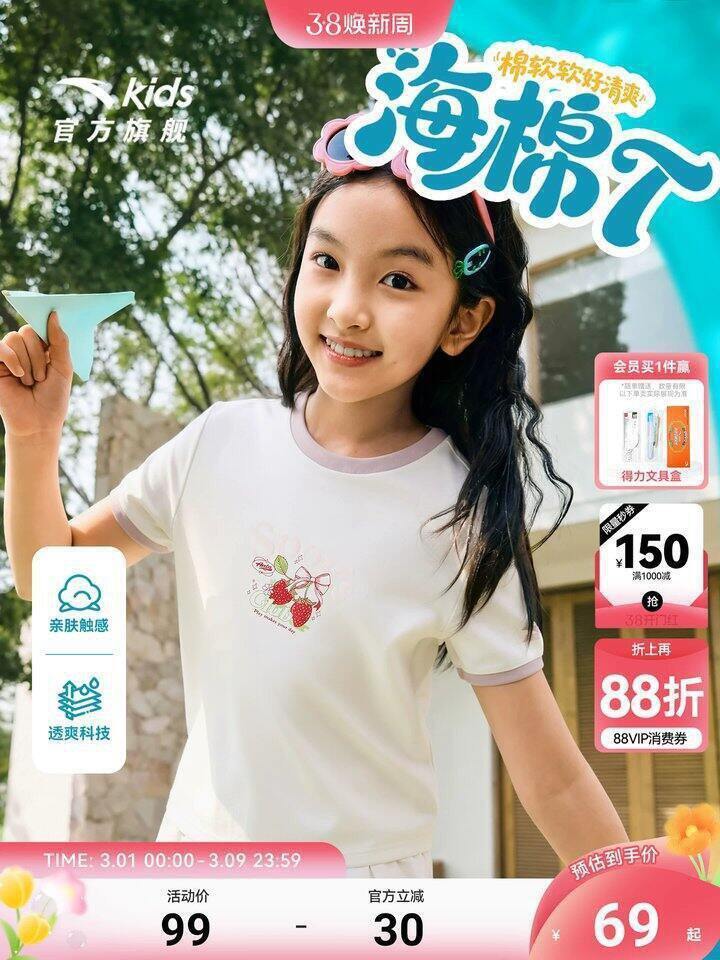 童装会场搜安踏,挑选有礼金款式购买https://s.click.taobao.com/57PHLio,直接凑消费券就可以了;