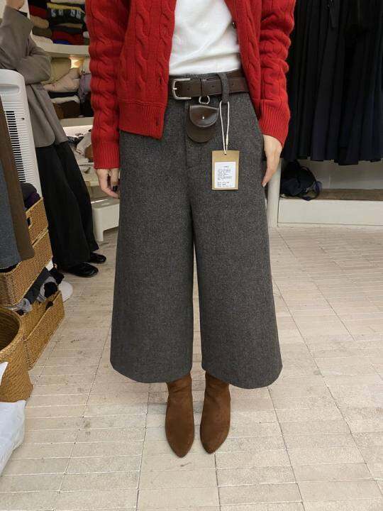 SM正版羊毛呢高腰加厚阔腿裤女2025冬季新款休闲直筒七分裤P7611