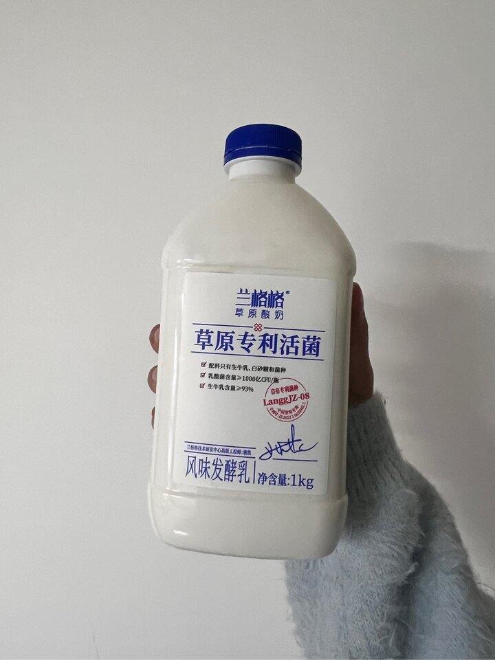 我之前就是要做干噎酸奶嘛,所以买了很多内蒙的1kg的酸奶,天润、西域春的饭盒酸奶我都买了,还有小西牛的,但是我跟你讲兰格格这个是真的好喝,它的甜度刚好,没有其他的一个配料,因为像我买的西域春和天润,他们其实会有一点点酸,但是兰格格就刚刚好!好喝到我舍不得做干(*⊙~⊙)噎酸奶!!