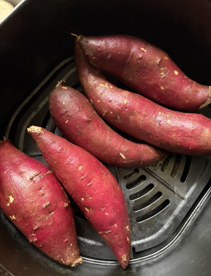👩🏻🍳做法:1️⃣红薯洗干净2️⃣空气炸锅200度20分钟3️⃣用凉水冲一遍4️⃣空气炸锅200度15分钟5️⃣榴莲蜜薯完成啦(其实我觉得因为大家工具的功率不一样,每次20分钟左右打开看看即可)