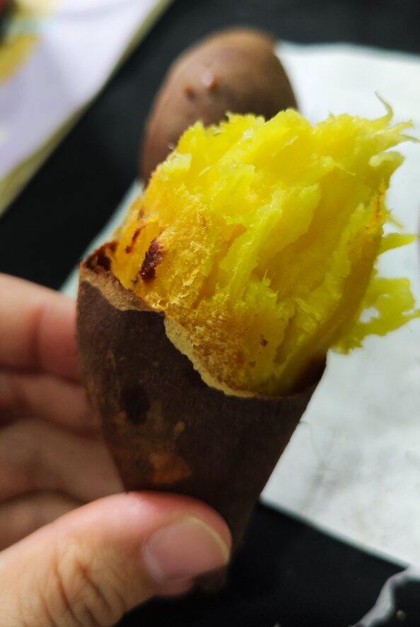 因为番薯已充分回糖,糖度较高,表皮会出现些许自然皱褶,但这并不影响口感。(以下都是小贩实拍)