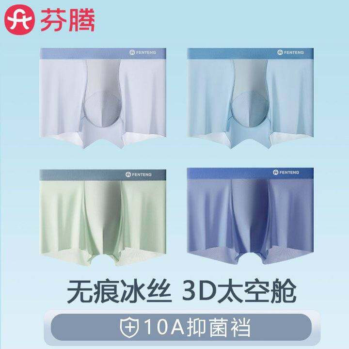 3条 芬腾冰丝无痕透气内裤男士夏季薄款纯棉抑菌裆四角裤男款短裤