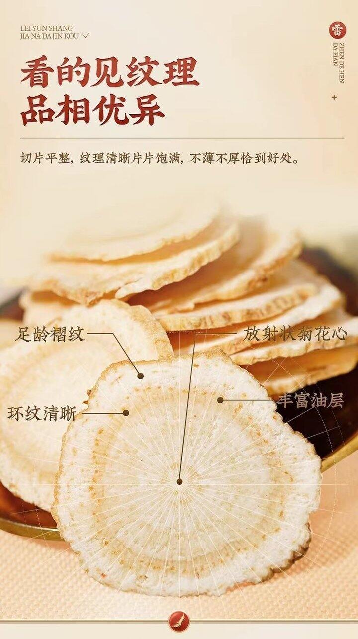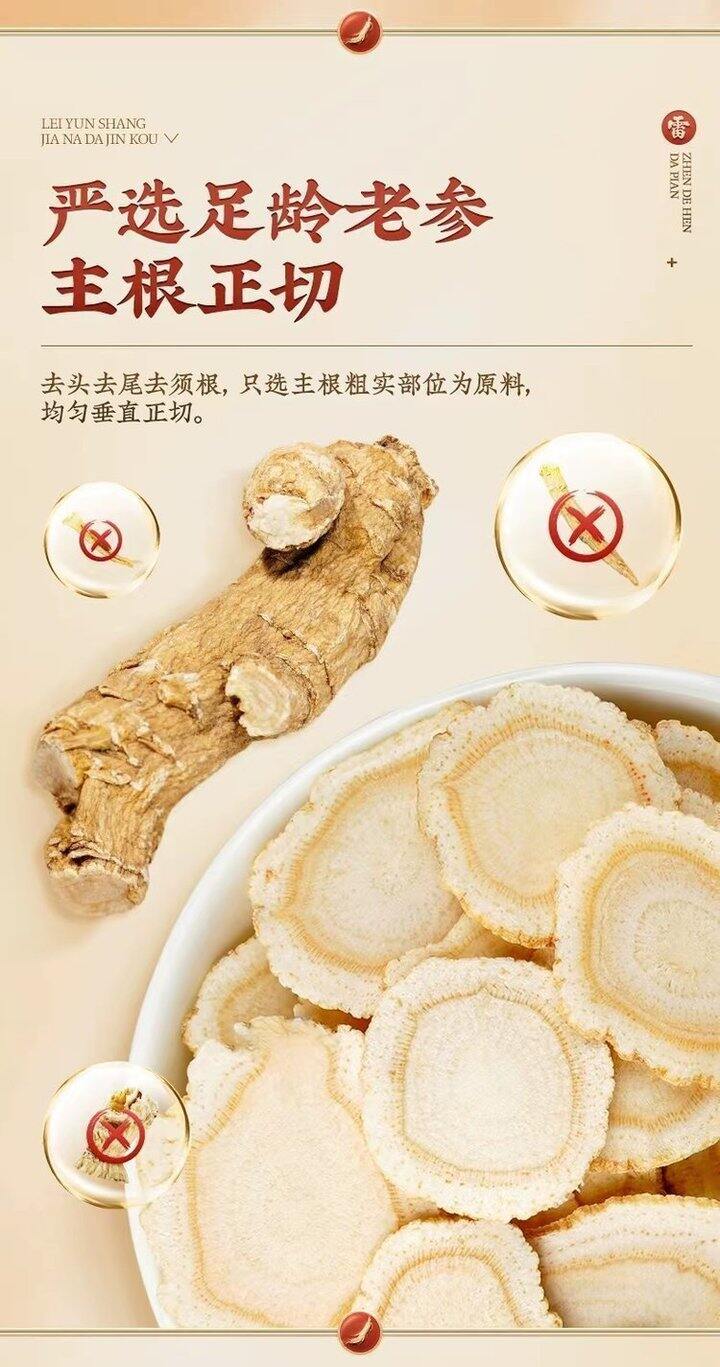 参片醇厚、口感回甘,泡水炖汤都合适! ✅加拿大进口原料,地道药材,参气十足 ✅5年足龄参,核心产区最珍贵参龄