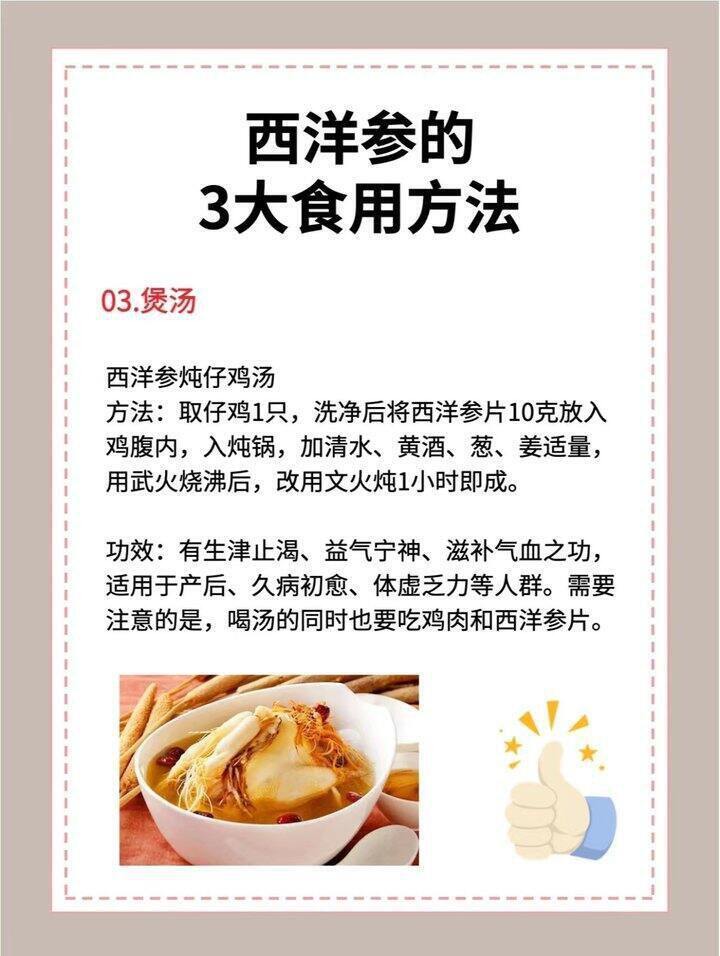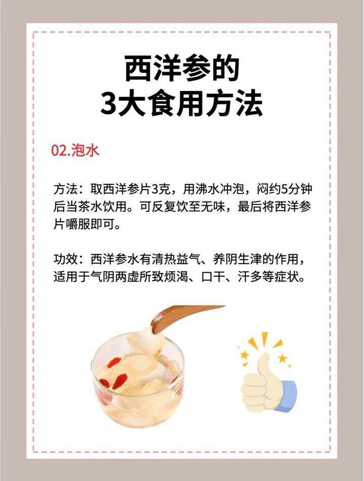 西洋参片的好,胜在方便! ✅ 吃法多样:泡水喝、含服、煮茶、煲汤都能用 ✨ 黄金搭配 养生加倍