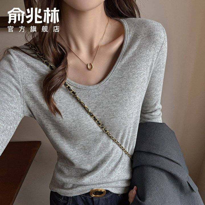 灰色U领打底衫女内搭2025新款秋冬季高级感修身显瘦长袖针织上衣