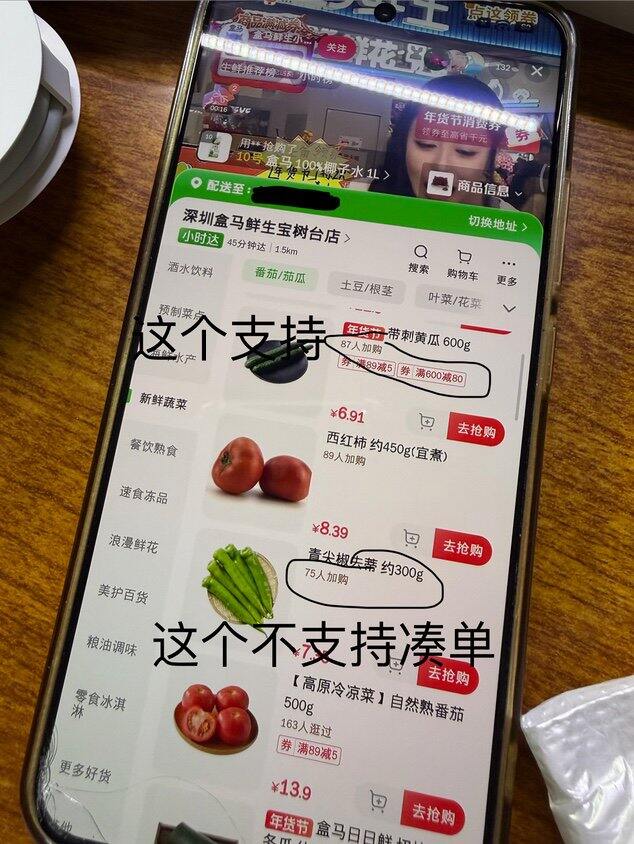 现在可以去抖音盒马直播间,点右上角「年货节消费券」,可以得到一个 150-20 的消费券。