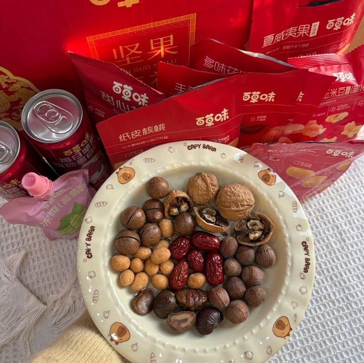 目前最便宜的坚果礼盒,百草味终于有活动了,别看20几块,里面还有三四种坚果呢,不像别家只有1.2样,包装也非常好喜庆大气,超级实惠,礼盒的价格卷到比散装还便宜了,