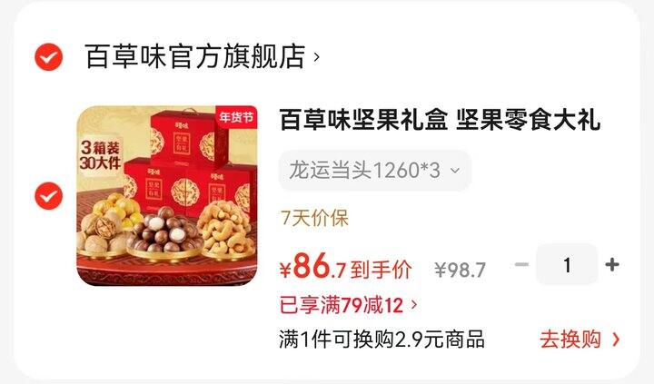 🎁百草味龙运当头坚果礼盒1260*3箱