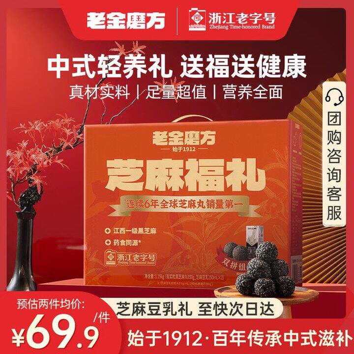 右上角‘淘金币’拍1件,老金磨方黑芝麻糊礼盒3罐1.2kg https://m.tb.cn/h.7onR2Y7