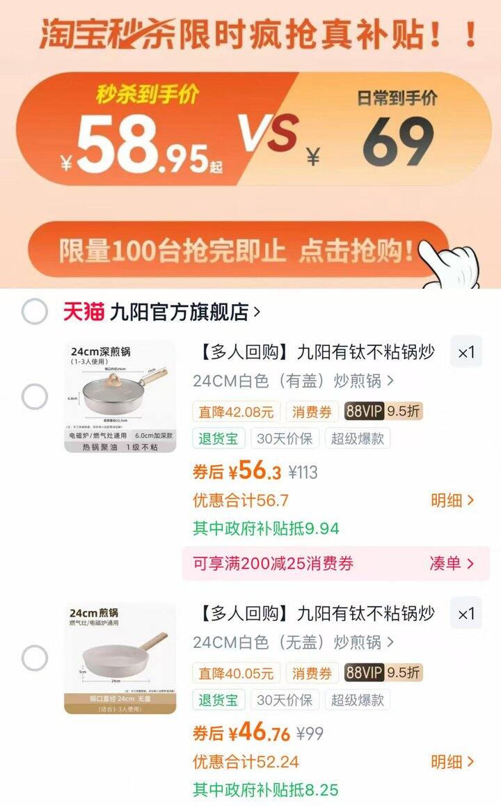 九阳不粘锅💰46起~带盖💰56