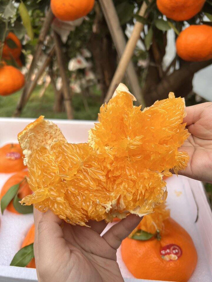 果肉有质感,浓郁,颗粒饱满,细腻化渣,但是种植不易(容易裂果),非常考验种植技术,所以又成为“橘中贵族”。