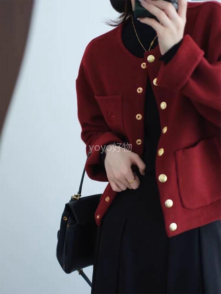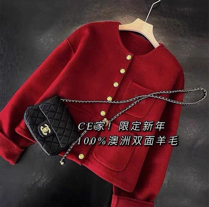 celine同款刺绣马车新年红短款毛呢大衣!💰299