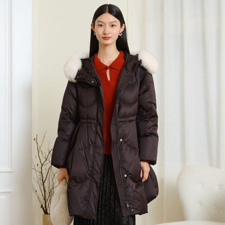 迪赛尼斯冬季新款白鸭绒狐狸毛领中长款羽绒服💰298元