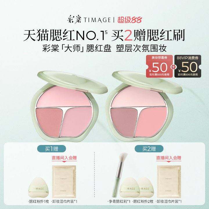 【立即抢购】彩棠TIMAGE三色腮红盘高光修容三合一蓬胀色收缩色腮