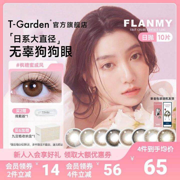 FLANMY美瞳日抛10片大直径狗狗眼T-Garden彩色隐形近视眼镜旗舰