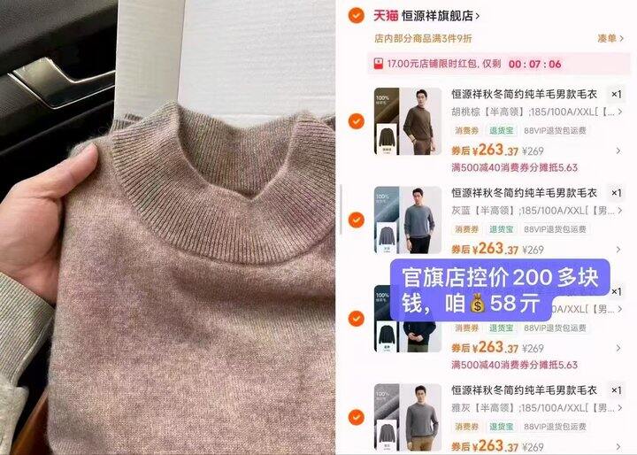 官旗!恒源祥男士羊毛衫💰58