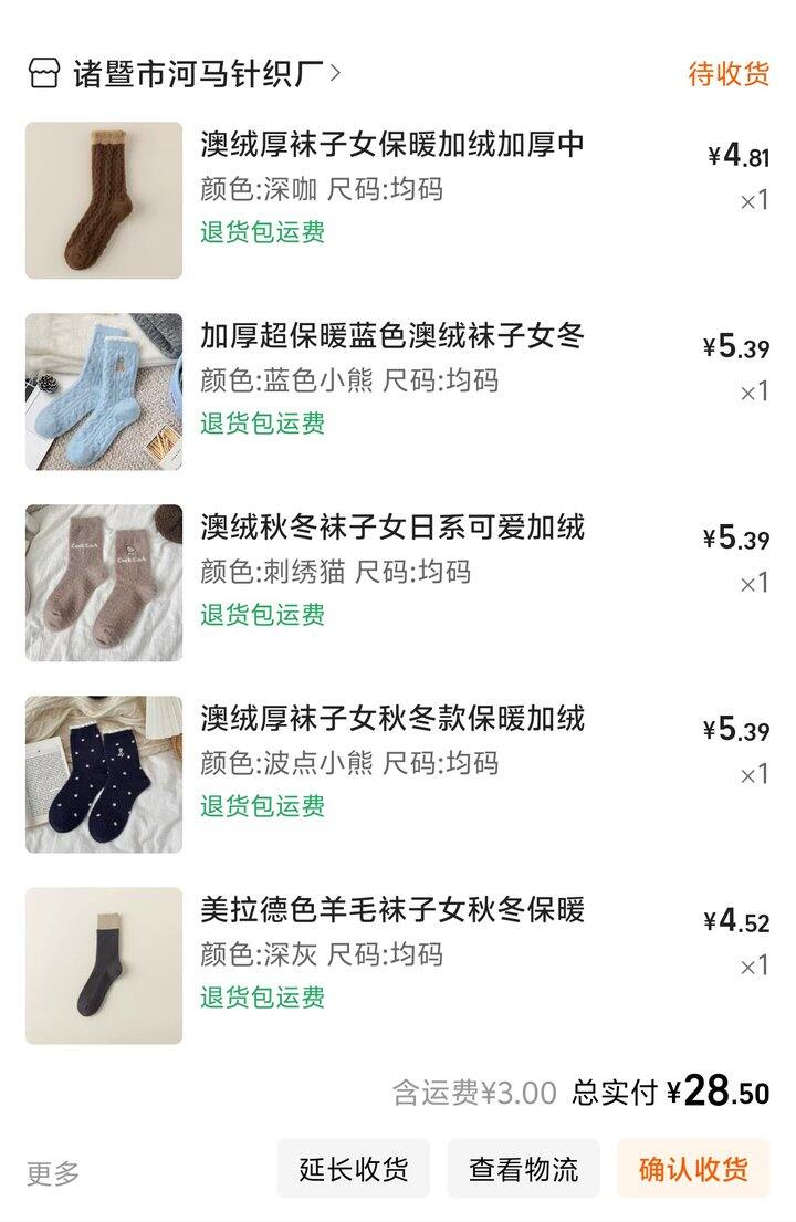 我以前都是买加绒的棉袜子,有时候穿着雪地靴脚也容易冰冰的。。。当然也可能是鞋子汗了[胖鹿捂脸]不重要