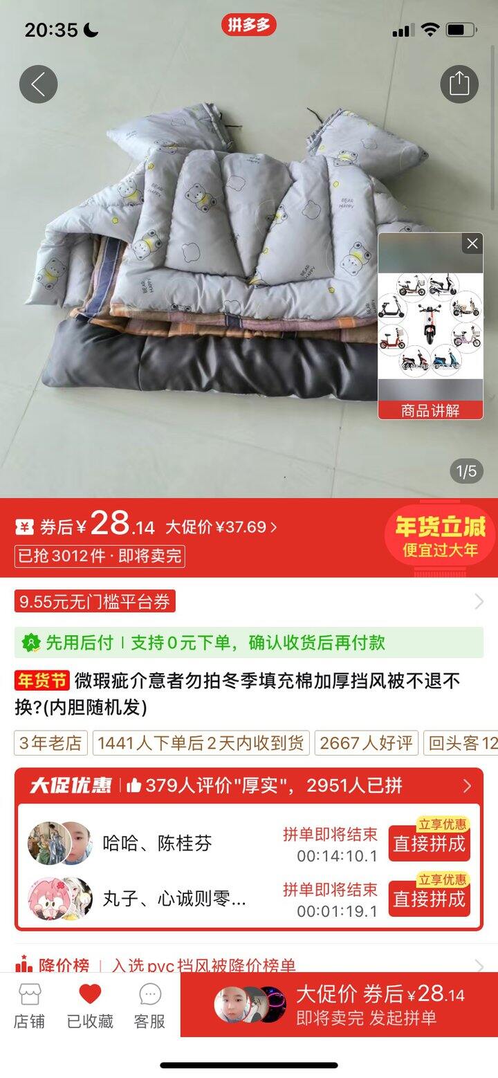 电动车挡风被,评论区说超级厚实,有不少评论说回购了https://mobile.yangkeduo.com/goods.html?ps=IusjSOOrT8