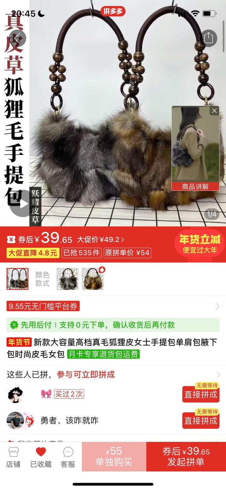 狐狸毛皮草包,评价不错https://p.pinduoduo.com/bGDwg8KQ?sc=EFAC