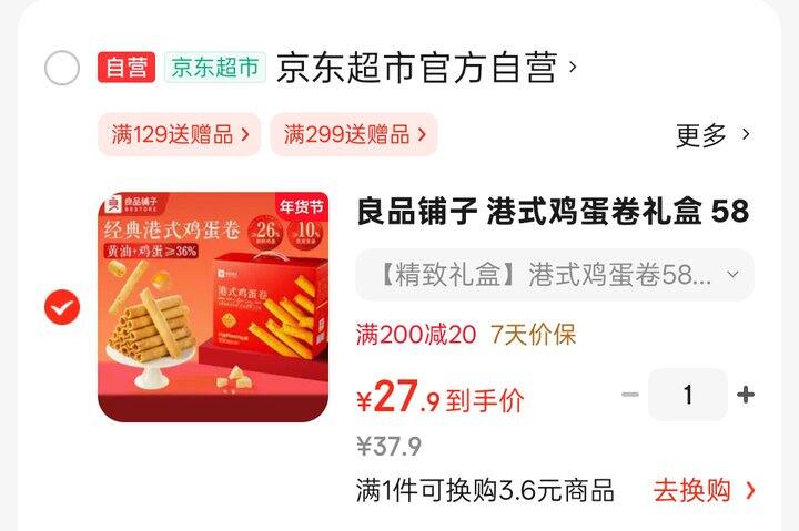 【自营】良品铺子 零食港式鸡蛋卷580g