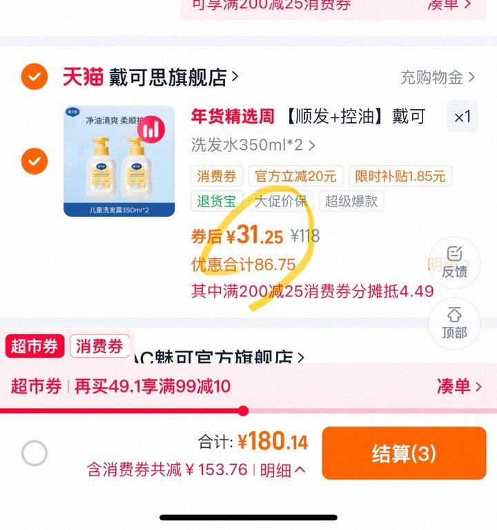 戴可思洗发水2瓶31.37