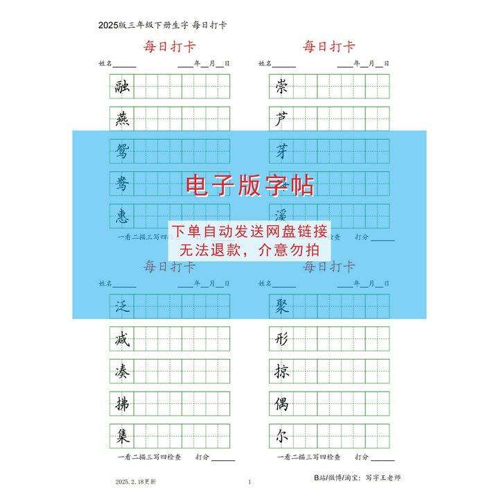 电子版字帖 2025版三年级下册生字(2025.2.18更新)